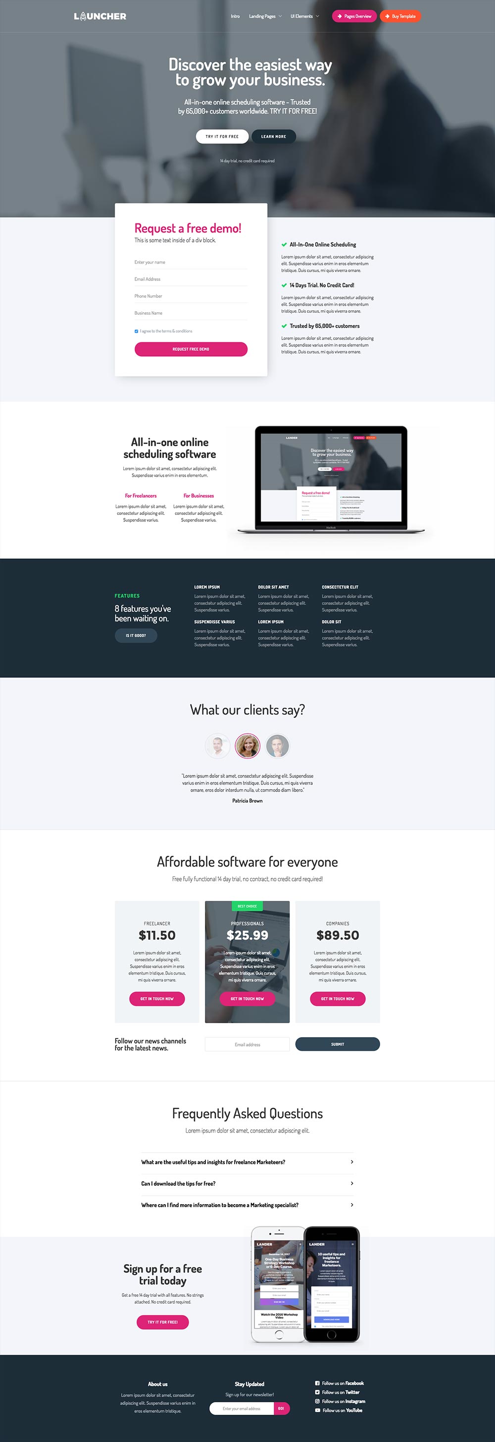 Overview of all page variations in this template: